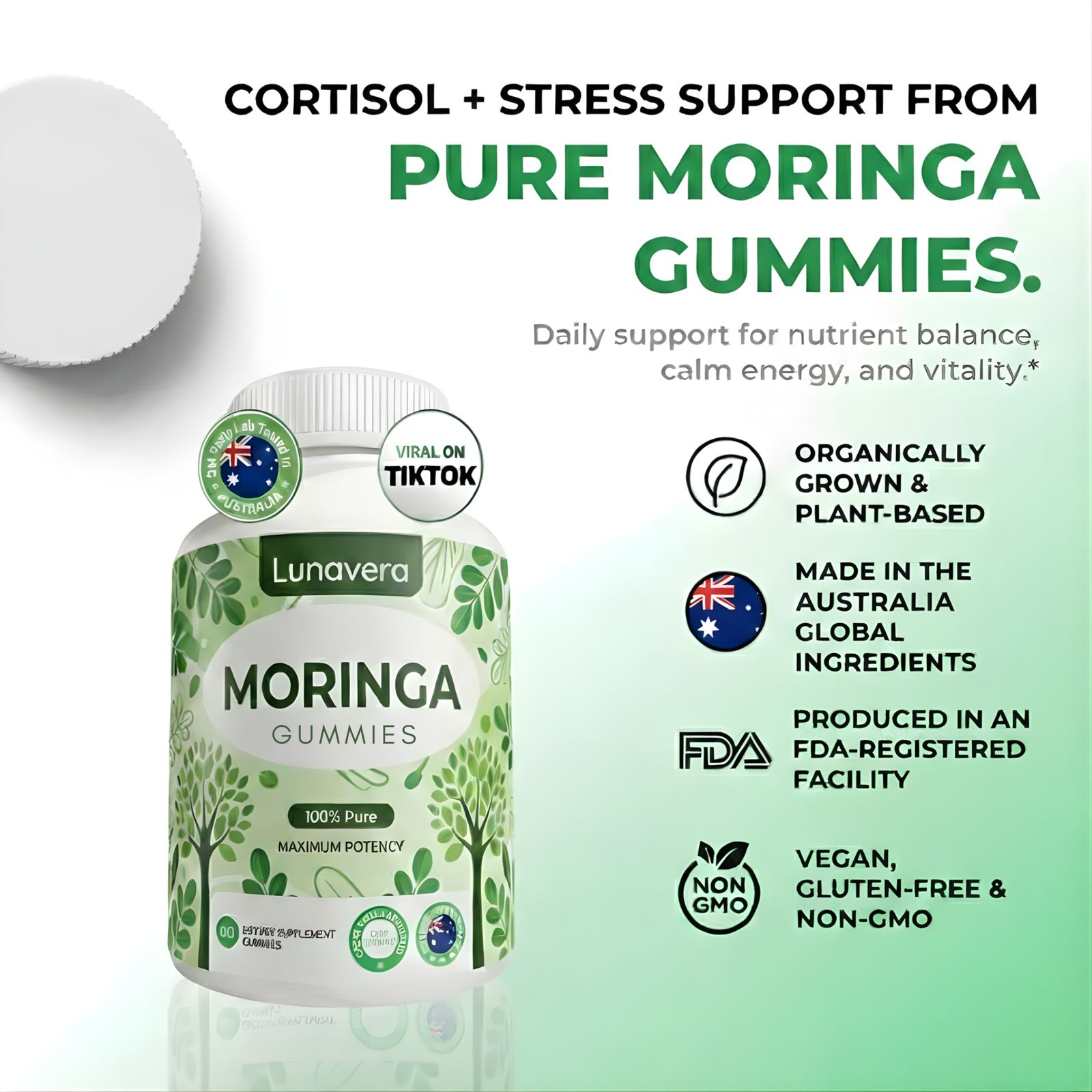 That's chronically elevated cortisol — and it's been quietly running the show. Lunavera Moringa Gummies were built to stop it. One daily gummy.