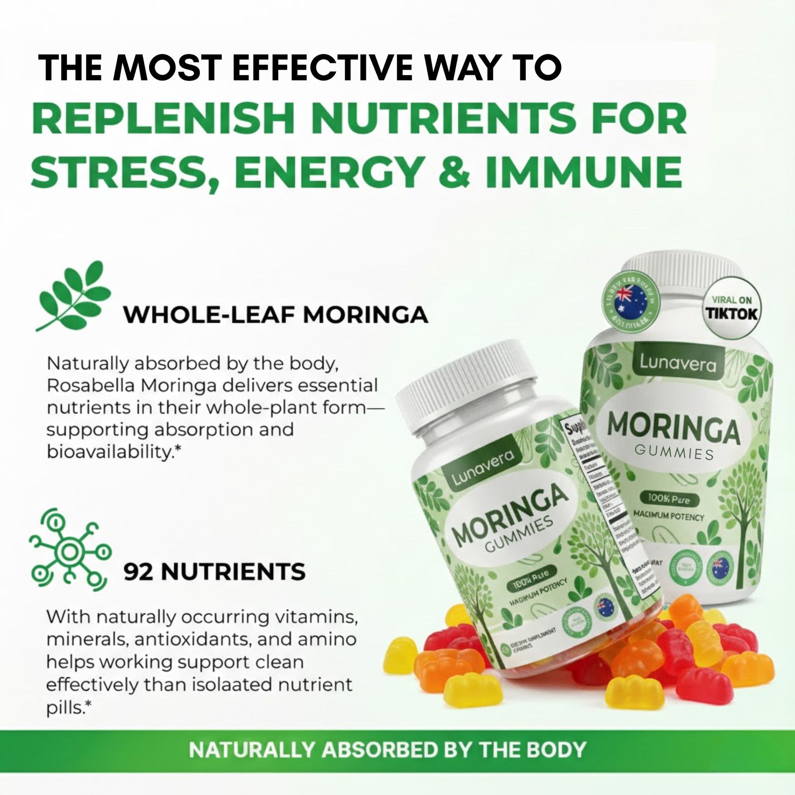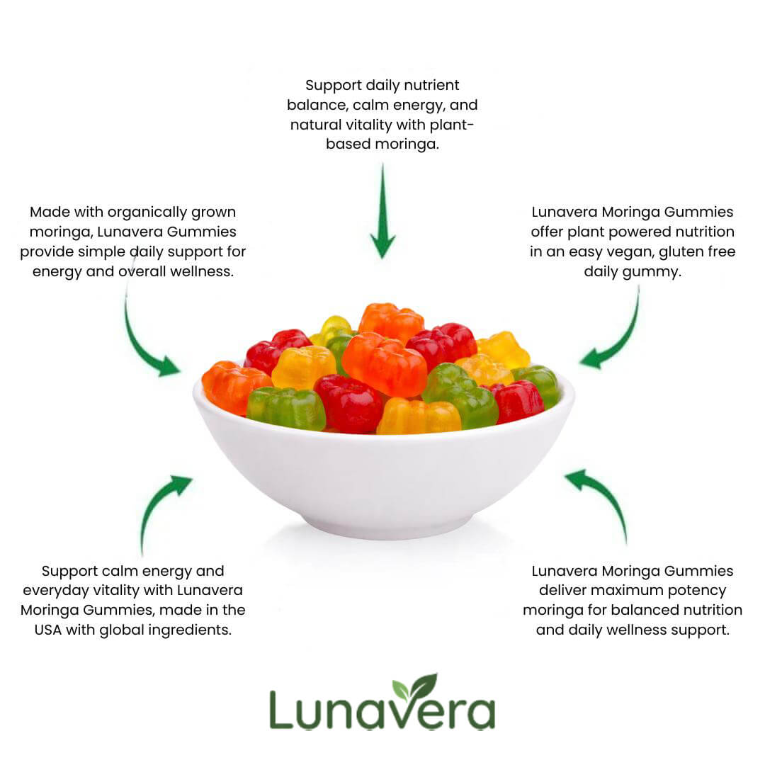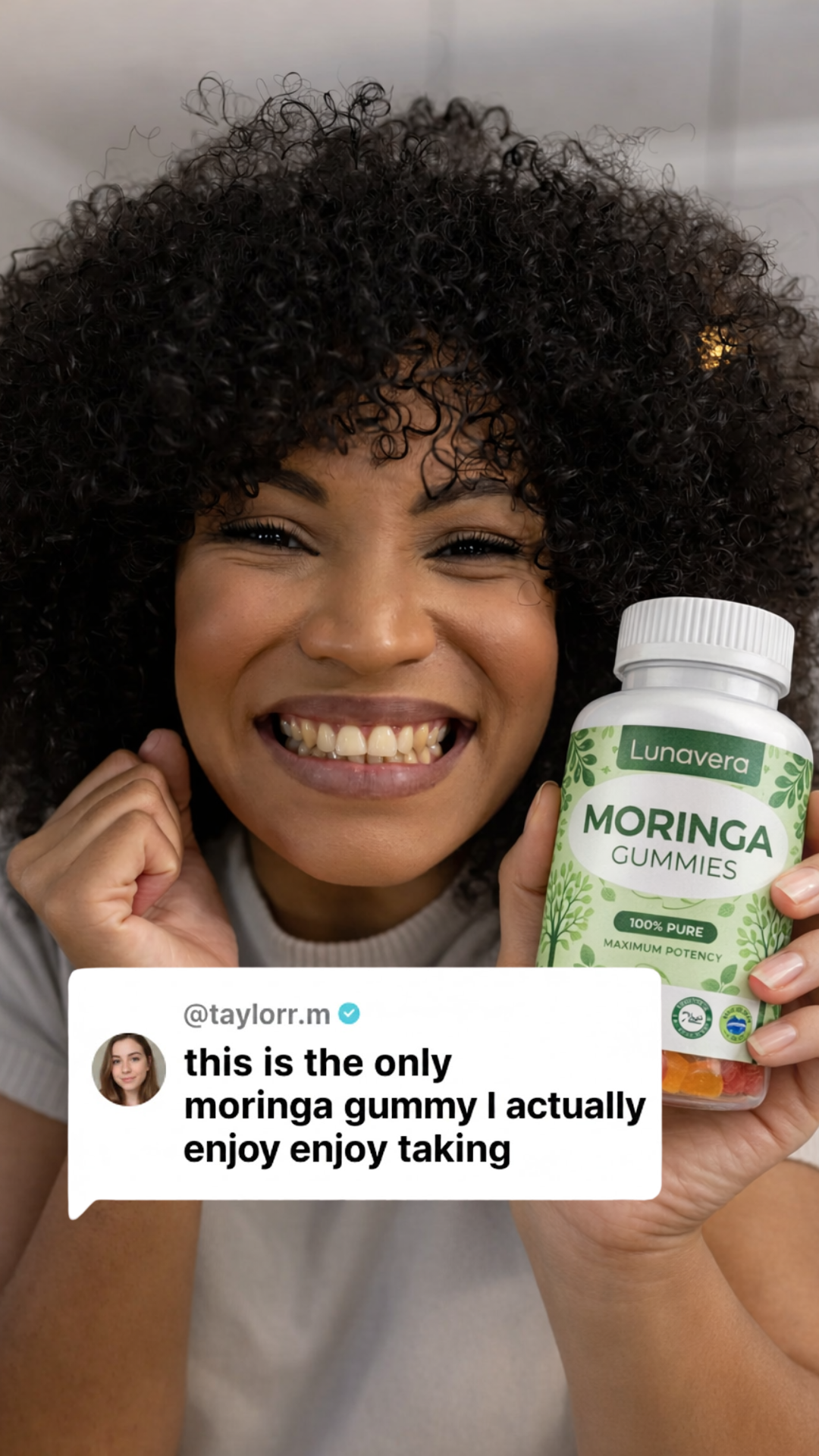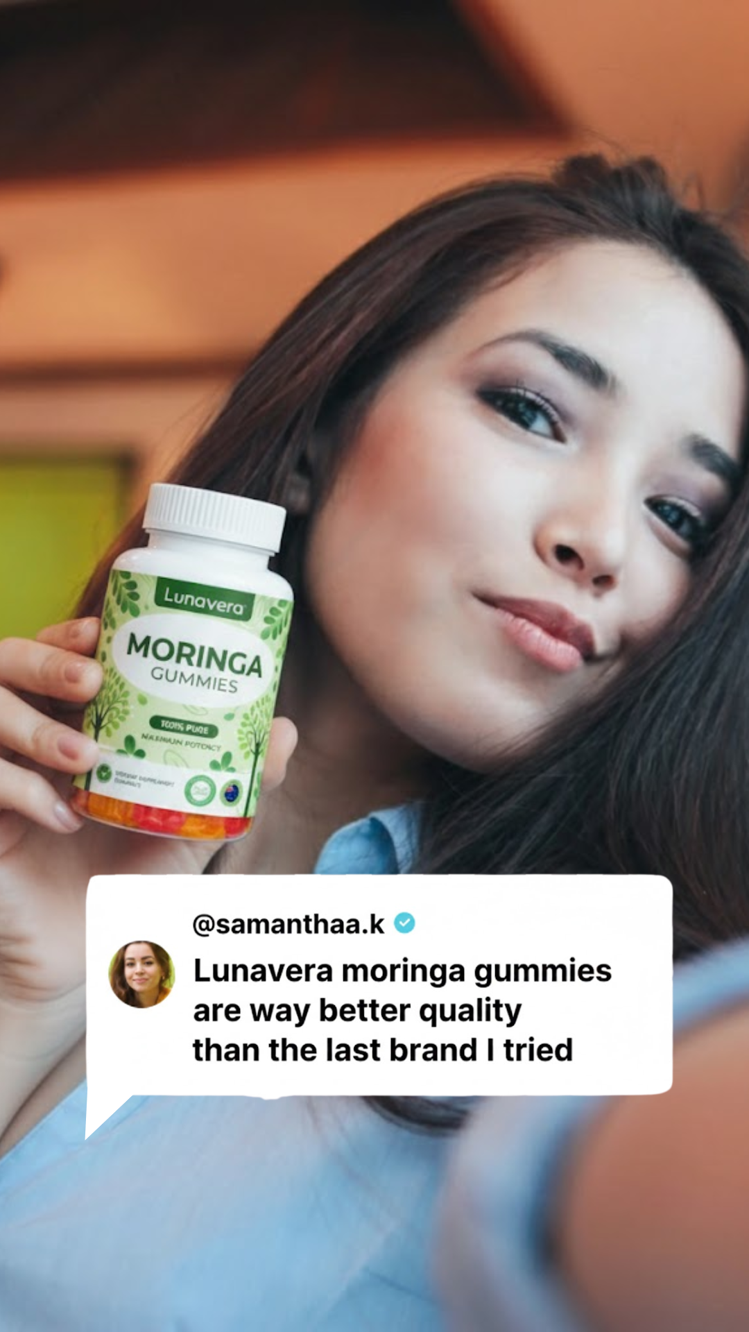 Most supplements come in hard-to-swallow capsules with ingredient lists you can barely pronounce. Lunavera Moringa Gummies change that.